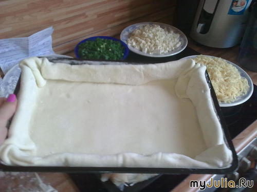Для начала нам потребуется: 1) слоеное не дрожжевое тесто - полкило (я лично купила его в палатке замороженное за 30 рублей, это гораздо быстрее чем изготавливать его на дому) 2) красная рыба (любая, в моем случае это была форель) - полкило 3) белая рыба (так же любая, мне пригодилась щука которую мы с любимым ловили три недели назад) - полкило 4) зеленый лук - 1 пучок 5) сыр адыгейский - полкило 6) сыр пошехонский - полкило Итак, приступим. Подготавливаем ингредиенты - тоненько нарезаем красную и белую рыбу, Тщательно смотрим, что бы в итоге получилось филе без костей, иначе при поглощение пирога вы будете отвлекаться на ненужные кости. Затем квадратиками нарезаем адыгейский сыр и натираем на любой терке сыр Пошехонский. Шинкуем лук. Раскатываем тесто и погружаем его в противень так, что бы это было похоже на корзинку или лукошко. После всего вышеперечисленного, начинаем выкладывать слои. Сначала в корзину из теста выкладываем красную рыбу - солим, далее лук перемешанный с адыгейским сыром, после этого выкладываем белую рыбу - солим и добавляем приправу к рыбе. Сверху засыпаем сыром пошехонским и немного солим. Погружаем противень в заранее прогретую духовку до 215 градусов примерно на 35-40 минут. Получилось необыкновенно, очень сытно и вкусно. Думаю, к этому блюду подойдет какой-нибудь салат из свежих овощей. Кушать пирог можно как горячий или теплый так и уже остывший. Маленькое примечание - когда пирог настоится хотя бы полдня, он становится еще вкуснее. Ну, и конечно, ПРИЯТНОГО АППЕТИТА! Рейтинг: +41
