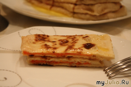 Предвидя Ваши возмущения, напишу следующие. Хинкали традиционно готовят совсем по-другому. Это блюдо из теста, баранины, его варят, а не жарят. Но меня познакомили с этим блюдом именно под таким названием, и относясь с уважением к молодой чеченки по имени Аминат, не стану менять название. Кому уж очень режет слух название, назовите "Лепешка с тыквой". У каждой из Вас есть не мало секретов, как приготовить быстрее блюдо и эффективнее, и я бы тоже что-то усовершенствовала в этом блюде, но эти хинкали готовлю строго по рецепту автора. Для приготовления «хинкали по – чеченски» Вам понадобиться: Тесто описанное в рецепте «Хачапури по – чеченски» и топленное масло. Начинка: 500 гр тыквы 2 ст. л. сахара В начале готовим начинку. Режем кусок тыквы на несколько небольших частей, корочку срезать не нужно. Укладываем в кастрюлю корочкой вверх, на донышко наливаем воды. Много воды наливать не нужно, т.к. тыква сама ее выделит. При возможности приготовьте тыкву на пару. Варим тыкву примерно 30 минут. После того как тыква готова, срезаем корочку и разминаем ее вилкой, добавляем сахар (я указала 2 ст.л., но все зависит от сладкости тыквы. Можно количество сахара уменьшить или увеличить.) Сливаем с пюре воду, если она есть. Приготовленную начинку убираем в сторону. Займемся тестом. Тесто готовим так же как на «хачапури по-чеченски». (См. часть 1) Берем сформированный шарик теста. Скалкой раскатываем тесто, формируя круг. Толшина теста должна быть тонкой, но настолько, чтобы оно не порвалось. На одну строну сторону теста выкладываем тонким слоем пюре из тыквы. Закрываем другой стороной. Соединяем обе стороны. Ставим разогревать сковороду на самой высокой температуре, лучше с покрытием тефаль. Масло не нужно. Температуру уменьшать не рекомендую. Кладем половинки на сковородку, через несколько секунд переворачиваем. Не забываем убирать со сковородки подгоревшую муку. Когда обе стороны спеклись, складываю на полотенце. И закрываем, чтобы не остыли. Итак, все половинки готовы. Но это еще не все. Моем хинкали, по тому же методу, что и хачапури (см. часть 1). И укладываем в сервировочную тарелку, поливая каждый слой топленным маслом. Не забываем полить сервировочную тарелку маслом, прежде чем положим на нее первую половинку. И когда все готово. Завариваем чай с травами. Желательно использовать чай крупнолистовой, а также добавьте чебрец, мяту и мелиссу или любые другие травы по Вашему вкусу. Повторюсь!!Не в коем случае не запивайте хинкали чаем с пакетиков. Это кощунство Режем хинкали на дольки. Наливаем чай. А если на Вашем столе будут стоять оба блюда: и хинкали и хачапури, то получиться не просто чаепитие по - восточному, а настояший восточный пир! Приятного аппетита!!!!!! Рейтинг: +29