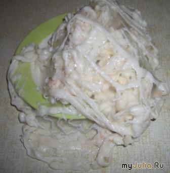 А в России это блюдо - сальники. Простое, но необыкновенно вкусное! И на праздничный стол подать их не стыдно, от гостей услышишь только слова благодарности и восторга. Итак покупаем на рынке жировую сетку ( диафрагма свиная). Хорошо ее промоем в холодной крепко соленой воде. Затем ополоснем в воде с добавлением раствора уксуса. Делаем очень аккуратно, чтобы не порвать сетку, она такая тоненькая! Затем раскладываем на столе и нарезаем по диагонали на квадратики, размером примерно 15 х 15 см. На каждый квадратик выкладываем по 1 столовой ложке фарша, и заворачиваем как блинчики или голубцы, можно придать продолговатую форму - колбаски. Главное, чтобы не было дырок на сетке, иначе фарш вылезет. Затем обжариваем сальники на сухой сковороде, жировые прожилки, проходящие по всей сетке начнут плавиться и сальники будут жариться в собственном жиру. Ну каковы они горячие! Тают во рту! Даже, кто не любит печень, не откажутся испробовать кусочек! А там только успевай подавать! Для фарша: надо пропустить через мясорубку 1 кг говяжьей печени и пару больших луковиц. На терке мелко потереть 1 среднюю морковь и туда же 1 стакан сваренной гречки (или риса запаренного). Соль. Я люблю « адыгейскую», она со специями. Если печень не внушает вам доверия, вымочите ее предварительно в молоке и не забудьте очистить от пленки. В составе фарша можно внести свою интерпретацию: добавить тертого сыра, или не класть крупу, а добавить тертый сырой картофель. Можно вообще положить фарш из мяса. Мне нравиться любой! Рейтинг: +46