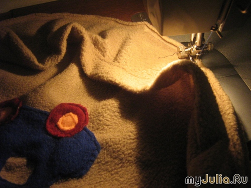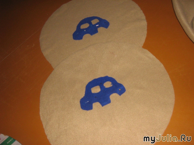 В нашем доме есть табуретки: красивые, удобные, но есть недостаток - быстро пачкаются. У нас маленький ребёнок, который частенько что-нибудь проливает или хватается за табурет грязными руками (например, сладкими, или в краске,..) Время от времени мягкий верх табурета приходится чистить щёткой или стирать. Это не совсем удобно, так как для его просушки требуется время. Поэтому, я решила сшить для табуреток новую «одежду», которую при необходимости можно постирать без вреда для всех. К тому же, я решила сделать их весёленькими, выбрав для украшения детскую аппликацию - машинку 1. Сделала выкройку из газеты, измерив диаметр сиденья табурета. 2. Распечатала картинку - машинку. Вырезала окна и колёса. 3. Перевела её на ткань, с помощью кусочка мела. 4. Вырезала и приложила части машинки на выкройку. Для шитья чехлов я использовала светло коричневый (ближе к бежевому) флис, а для аппликации взяла кусочки синего, красного и оранжевого. Эта ткань не рассыпается, поэтому, я шила без загибов. 5. Аппликацию прикололола портновскими иголками, пришила её к будущему чехлу на машинке. 4. К основанию кругу - пришила из того же цвета полосу (длина круга), на которой заранее был сделан подгиб (для вставки резинки). 5. Вставила резинку, надела на табуретку готовый чехол. Такие вот весёленькие чехлы получились, которые легко можно постирать в случае загрязнения. Рейтинг: +77