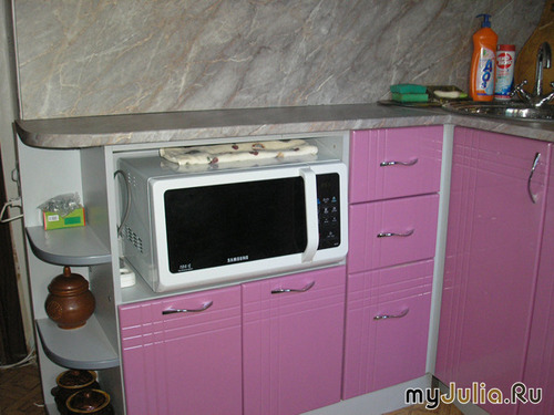Не зря в народе говорится « ремонт –надо суметь пережить». По каким-то там правилам ремонт на кухне полагается делать раз в три года. Я не желая, портить себе весенне-летний настрой обычно затеваю ремонт осенью: на улице непогода, слякоть, а дома «вытворяешь красоту». Решение затеять ремонт на кухне по весне настигло нас с мужем внезапно ( хотя необходимость в этом назревала давно): в момент посещения мебельного магазина нам приглянулся кухонный гарнитур. Ну не могли ж мы установить красивый, пышущий красками гарнитур в устаревший интерьер… Рассуждая о красоте увиденного гарнитура, его размерах мы с мужем пришли к однозначному выводу: увиденный в магазине гарнитур в нашу кухню по размерам не войдет. Я облегченно вздохнула и в тайне даже стала мечтать о новых платьях, костюмчиках на лето, которые я прикуплю себе вместо кухонного гарнитура… Однако вечерами разговоры о новой кухне продолжались и тогда мы решили, что надо заказать мебель на кухню под ее размер. Итак, началась эпопея «омоложения» нашей кухни. Мы обратились в три фирмы : две из них приглашала я, а с третьей- работал муж… Они делали замеры, предлагали эскизы с учетом наших потребностей. Обязательное условие: упрятать стоящую на кухне стиральную машинку, найти место для микроволновой печи и телевизора. Из трех фирм выиграла та, которую самой первой нашла я . Мне был предложен эскиз с учетом небольших размеров нашей кухни ( 6 кв.м) и всех наших условностей… С первого раза, без восклицаний «это не возможно! Так разместить не возможно!». И мы подобрав цвет дверок, основания, стекла, ручек , мойки и прочего оформили в середине марта заказ на изготовление кухонной мебели. Я выбрала кухню себе лилового цвета . Лиловый – очень многосторонний цвет. Сочетая в себе пламя красного и безмятежность голубого, он может, как успокаивать, так и вызывать страсть. Согласно фен-шуй, лиловый цвет означает жизненную силу. В китайской классической поэзии лиловый цвет символизирует положительную духовную силу Лиловый существует в природе везде – от баклажанов до аметистов, а человек сделал этот цвет символом королевской власти. Пока делали нашу кухню мы заменили обычное окно на кухне на пластиковое. Сменив подоконник , на более подходящий по размеру, с учетом последующий установки заказанной кухни. Переносились розетки, выключатели, клеились обои. Мы знали, что изготовление нашей кухни будет не скорым, а потому и с остальным ремонтом сильно не торопились. Едва, успев закончить оклеивание обоев, я получила сообщение « ваша кухня готова, давай определимся с днем установки». Конечно же, мы выбрали субботу: муж выходной, я – на больничном. Работа по установке заняла достаточное количество времени… Потом еще муж устанавливал мойку , так как это отдельный вид услуг. Муж мне достался старательный, он прекрасно с этой задачей справился сам. Потом я выметала кучу оставшегося мусора, намывала полы и была безмерно счастлива. Зачем мне какие-то новые платья, если ощущение от удобства, комфорта, которые принесла нам наша новая кухня не заменить ничем. И пускай говорят, что «ремонт- надо суметь пережить». Ощущения новизны и уюта стоят того, чтобы какое- то время потерпеть неудобства. Как было! Как стало! И микроволновой печке место нашлось... И телевизор более не мешается.. И машинка стиральная спрятана от ежедн