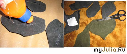 Они подтягиваются с горшками и корзинками, зная какое удовольствие для меня действительно живые цветы. Зато во дворе всегда цветет несколько сортов клематиса, или бархатцев, да и много чего еще. Как любая женщина не могу устоять перед их красотой. Весь дом у меня наполнен букетами из сухоцветов, разной величины и составляющих. Увидев, какой замечательный конкурс проходит на нашем сайте, решила исполнить свою давнюю мечту, сделать картину из кожи, вернее кожаных цветов. Почему именно кожа необходима как материал? Она хорошо держит форму и драпируется. Ткань же нужно дополнительно обрабатывать, бумага - как-то просто, а, увидев такую картину в магазине,я не могла оторваться. Попробовала найти пособие по поделкам из кожи, но не попалось ничего достойного, и поэтому на свой страх и риск решила сделать так, как я сама представляю. Придумать самой, пусть даже давно известное, тоже интересно. Порывшись в закромах с пыльными останками былой красоты, нашла два капюшона, один из кожи «нубук», второй тоже со странной структурой, и еще пиджак. Также нашлись кусочки тонкой замши зеленого цвета, и я приступила к изготовлению. Мне понадобилось: акриловые краски, серебристая и аметист и кисточка, рамка, клей, забытая на чердаке кофточка, ну и немного фантазии. Вырезала кусочки кожи в виде листиков, середину намазала клеем и загнула пополам. Положила под пресс. Из кожи другого цвета вырезала лепестки цветка. Также покрыла клеем тыл, и «помяла». Основу рамки покрыла клеем, Также помяв, прикрепила ткань, лучше чтобы она была бархатная, тогда получается красивая игра света, хотя на фото не видно. Сначала хотела сделать фон однотонным, но мне не понравилось, и придумала вариант с тканью. Стебли и листики на нем вырезала из зеленой замши, а листики надрезала. Секунду подержала над огнем, чтобы края приобрели естественную форму и слегка загнулись. Пригодились две кисточки от старых сапог, загнув внутрь часть бахромы капнула клей, закрепив их таким образом. После того, как клей на ткани высохнет им же прикрепляем и цветы и лепестки. Как вариант можно и прошить насквозь нитками или степлером, но у меня держится и на клее. Ну ,теперь включаем немного вкуса и художественного навыка. Последним бог сильно меня обделил, поэтому, как получилось вам судить. Красим саму рамку серебристой краской, закрепляем произведение, вроде готово. Не знаю, отражает ли фотография все подробности, но мне и моим близким понравилось! Рейтинг: +44