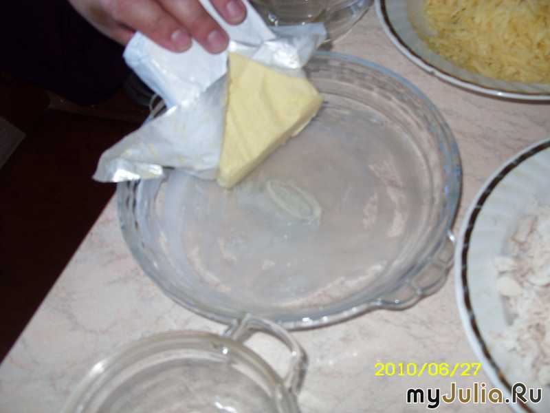 Сегодня, хочу познакомить Вас с кулинарными шедеврами моего супруга. Почти каждые выходные он на кухне что-нибудь ваяет. В эти выходные супруг готовил жульен. Специальных емкостей для этого блюда, называемых - кокотница, у нас нет. Мы используем стеклянные тарелки, которые можно ставить в разогретую духовку.