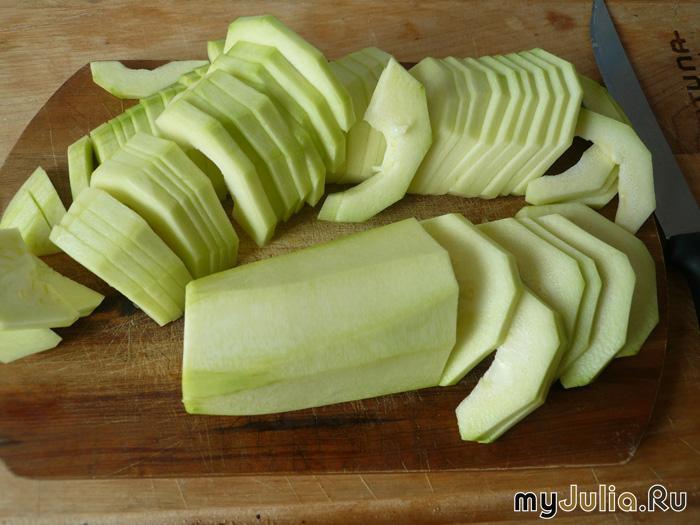 На кого-то положительно действует глажка белья (а я ее просто ненавижу), уборка квартиры, «хождение» в Сети. Меня успокаивает готовка. Вот такое это простое слово, но не всегда легкий процесс, хотя, как говорится, у кого и к чему душа и рука лежит. Из-за усталости и растерянности от неясного диагноза у человека, лежащего в больнице, я боялась, что у меня на кухне вообще ничего не получится. Бывает же так, что из-за переживаний или потрясений подгорает еда, можно порезать палец, пересолить блюдо и т.п. Я не знала, что и как у меня выйдет, но была ориентирована на приготовление супа. Главным ингредиентом нашего супа стали кабачки. Я их обожаю во всех видах, тем более диетологи рекомендуют их как ценнейший диетический продукт. В кабачках содержится много калия, есть кальций, натрий, фосфор, магний, медь, железо, набор органических кислот и витамины В1, В2 и С. Для приготовления супчика понадобятся следующие продукты: 1. Кабачки 2. Мясной фарш (говядина+свинина) 3. Томатная паста 4. Болгарский перец 5. Помидор 6. Репчатый лук 7. Морковь 8. Зелень (укроп, петрушка) 9. Соль, черный молотый перец, базилик 10. Мука Не очень крупно режем кабачки и репчатый лук: Трем красавицу- морковь: Кубиками режем болгарский перец и помидоры: С зеленью обжариваем мясной фарш: Фарш на время выкладываем в отдельную тарелку, он пригодится немного позже. Теперь вернемся к овощам. На подсолнечном масле обжариваем репчатый лук, морковь и сладкий перец: Добавляем кабачки и немного воды и тушим на небольшом огне: Когда кабачки более или менее протушились можно добавлять помидоры и сухой базилик, солить и перчить: Чтобы фарш «не обиделся», одиноко сидя в отдельной тарелке, добавляем его к овощному рагу: Сюда же 1-2 столовые ложки томатной пасты и зелень: Готовое рагу переливаем в кастрюлю с небольшим (в моем случае не более 150 мл.) количеством кипяченой воды, по вкусу добавляем соль и перчим. Знаю, что многие практикуют в приготовлении супов бульонные кубики. Думаю, можно использовать и для этого блюда. Варим еще не более пяти минут, добавив пару щепоток муки для загустения, хотя суп и так получился довольно густым из-за большого количества фарша и овощей, в особенности кабачков. Подаем на стол горячим, с зеленью и сметаной (на любителя!). Приятного аппетита! P.S. Я успокоилась, а суп-гуляш получился отменным! Рейтинг: +69