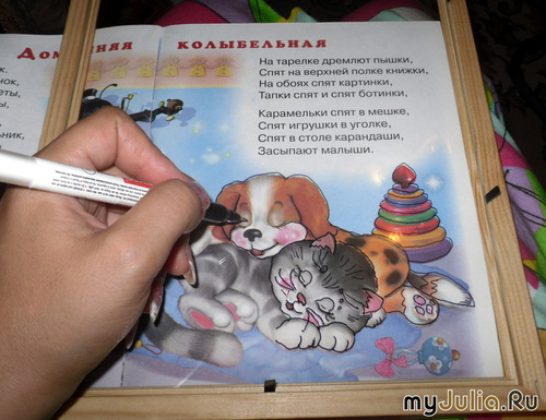 У одной моей родственницы ковер был даже на диване. Я, будучи маленькой девочкой, не могла понять, зачем он ей, неудобно же сидеть. Но потом поняла, что родственница гордится им. Шли годы и до людей стало доходить, что ковры в доме - это сборники пыли. От них стали избавляться и перекладывать на пол. А что же тогда на стены? И стали на стены покупать картины: как раньше, в старину или как сейчас за границей. Картины, написанные художниками, стоили дорого. И снова люди, имеющие достаток, покупали живопись мастеров, а люди победнее фотокартины. Стены стали украшаться во всех домах. Техника приветствовалась разная, на любителей: то-то предпочитал авангард, кто-то живопись. А что же сейчас, в наше время? В наше время они так же являются основным украшением стен, но... появилось разнообразие картин. Многие всё так же предпочитают картины, написанные мастерами. Некоторые покупают фотокартины. Причем не всегда от недостатка средств, чаще, чтобы их можно было обновлять и приобретать новые, удаляя уже поднадоевшие со стен. Они не дорого стоят и менять их даже интересно. Картины из мраморной крошки одно время пользовались спросом. Обычно их делают на срезе дерева. Они легко моются и долго сохраняют свежий вид. Хочу особое внимание обратить на работы рукодельниц: это солёное тесто, вышивка крестиком, текстильные и пластилиновые картины. Такие картины особенно дороги, потому что кто-то или ты сам, вложил в них частичку себя. Как впрочем и работы художников. Солёное тесто можно оставлять в первозданном виде, а можно и украшать цветными красками. Смотрится красиво и так, и так. Вышивка крестиком очень кропотливая работа, картины смотрятся красиво. Это работы моей подруги. Так же есть текстильные картины, покажу лишь свою, но разнообразие этого творчества не перестает удивлять. Ну и особое внимание хочу обратить на пластилиновую картину. Я сама о таких картинах узнала совсем недавно от одной джулианки. Сделала сама и решила показать мастер класс. Может еще кто-то захочет порадовать свою семью или своих друзей такой работой. Я сделала на детскую тематику, потому что для сынишки,но выбрать тему можно любую: от цветов до абстракции. Начало картина берет своё в магазине: покупается рамка, пластилин (желательно разнообразных цветов), маркер (я брала тонкий черный) и картину которую вы хотите слепить. Я взяла детскую книжку. Можно брать любую картину или, если умеете рисовать, то рисунок будет ваш собственный. Разбираем рамку, подкладываем рисунок под стекло и обводим его маркером. В моём случае, я решила скомбинировать два рисунка из книги. Тут я допустила ошибку. Внимание, рисунок, который будет у вас, он будет как зеркальное отражение. Я нарисовала будильник, с циферблатом как на картинке, а на моей картине, когда я её перевернула, часы были искажены. Поэтому такие вещи как часы, цифры или надписи надо писать через зеркало с права налево. Рисунок готов. Часы я еще не заметила. Исправляла их уже в самом конце. Теперь дело за пластилином. Работа почти ювелирная. Мне, если честно, немного мешали ногти. Сначала вылепливаем, с помощью пластилинового ножичка, мелкие детали. Работа так увлекает, что уже забываешь не только фотографировать процесс, но и о времени. Последним накладывается фон на картину. Фотографировала сбоку, так как вспышка оставляет свой блик. Вот такая кар