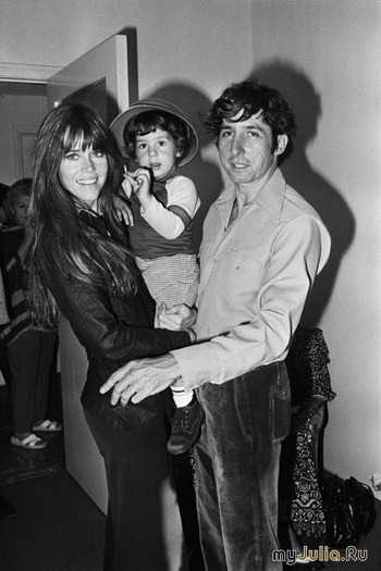 А затем она начала занятие по аэробике, причем выполняла сложные упражнения с такой легкостью, что не восхищаться ею было невозможно! Но самое главное: ей было на тот момент около 50 лет. А в 50 лет она завоевала титул «Самая восхитительная американская женщина» (Roper Poll)! Джейн Фонда – первый ребенок блистательного американского киноактера Генри Фонды– родилась 21 декабря 1937 г. Появление малышки на свет не обрадовало родителей: они хотели мальчика. Джейн с пеленок попала в руки чужих людей, занимавшихся ее воспитанием, так как мать не пожелала ее даже кормить. Вся материнская любовь была отдана брату Питеру, который родился чуть позже. А отец занимался карьерой и не обращал на детей никакого внимания. Именно тогда, в детстве, у Джейн сформировалось стремление быть лучше всех: очень хотелось обратить на себя внимание родителей, и особенно отца, которого она боготворила и была практически его копией. Когда девочке было 11 лет, мать попала в психиатрическую лечебницу и вскоре покончила жизнь самоубийством, но для Джейн почти ничего не изменилось. После окончания самого престижного женского колледжа Вассар, Джейн Фонда уехала в Париж заниматься живописью. После возвращения в 1958 году в США ее судьба круто изменилась: по совету Ли Страсберга она поступила в театральную школу г. Нью-Йорка, где проучилась 2 года. Дебют в кино – роль студентки в фильме «Невероятная история» (1960г.) – милой девчонки в короткой юбочке и обтягивающей кофточке. Молодой актрисе хотелось самостоятельности, поэтому она уехала во Францию. Здесь она вышла замуж за французского режиссера русского происхождения - Роже Вадима. В его фильмах она с успехом играла милых сексуальных "кошечек". Самым значимым в этот период оказался фантастический фильм «Барбарелла», задуманный Роже Вадимом как пародия на американские боевики. В нем Джейн Фонда сыграла инопланетянку, покоряющую мужчин. Костюмы к фильму разработал Жак Фонтерей на основе идей Пако Рабанна: они были признаны самыми сексуальными в кино 60-х, а Джейн Фонда, соответственно, стала секс-символом. Удивительно, но в 2004 году в опросе британского журнала «Фильм Ревю» по поводу самых сексуальных героинь кинематографа на первое место опять вышла Барбарелла, а сам фильм был отмечен в числе самых значимых кинолент XX века. Вот это пародия! В 1968 году Джейн Фонда покинула Францию с полуторагодовалой дочкой на руках для съемок в остросоциальном фильме Сиднея Поллока «Загнанных лошадей пристреливают, не так ли?» А в 1970 году она оформила развод с Роже Вадимом, который не разделял ее политических убеждений. Начался новый период в ее жизни – политический. Преуспевающая голливудская актриса, получившая Оскара за главную роль в фильме «Клют» (1971г.), она принимала активное участие в борьбе против войны во Вьетнаме. В начале 70-х ее называли Джейн Ханой: она не просто выступала в прессе против войны, она ездила по фронтам, агитировала солдат и летчиков отказаться от военных действий против вьетнамского народа, вела передачи на радио. Ее даже хотели обвинить в измене родине. Можно сказать - она была лучшей в борьбе против войны! В это время она сдружилась с Томом Хайденом – левым радикалом по убеждениям, за которого и вышла замуж в 1973 году. С ним и маленьким сыном она приезжала в Ленинград на съемки в фильме «Синяя птица» в 1976 году, где сыгра