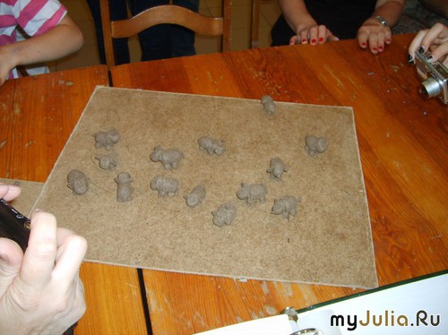 Я очень люблю керамику - в разных ее видах. Ведь и тончайший фарфор, и фаянс, и майолика - все это тонкая керамика. Восхищаюсь людьми, которые умеют своими пальцами вселять душу в глину, даря ей частичку своего сердца... В Доме ремесел нашего города проходят различные выставки, я стараюсь не пропустить ни одной. И вот огромное везение: на закрытие выставки "грубой " керамики приехала одна из авторов работ и не просто приехала - а с глиной! И с желанием провести мастер-класс! "Грубая" керамика - это керамика, у которой крупнозернистый черепок, но совсем не грубая работа. Судите сами: "Ангельское утро" А в эту Сонюшку нельзя не влюбиться: Кстати, если присмотреться, то в слоях перин можно обнаружить горошину! Я спросила у автора - не принцесса ли это на горошине? Оказалось, что после одной из выставок принцесса вернулась "раскоронованной" - корона просто обломалась. Принцесса превратилась в обычную очаровательную Сонюшку. Но вот на этой фотографии, в другом ракурсе, в характере девочки проявляется коронованное прошлое. Не могу не показать вам еще одну фотографию: так получилось, что отражение вспышки фотоаппарата, как солнышко всплывает из сосуда. Яна, автор этих работ, молодой и талантливый художник, так и излучала на всех присутствующих свой внутренний свет. Итак, мастер -класс: лепим барашка для Маленького Принца. 1. Отщипываем от комка глины один кусочек покрупнее и формируем из него овальчик - колбаску, это будет туловище барашка. 2. Из кусочка поменьше в ладонях формируем шарик - это голова. Слегка вдавливаем большим пальцем руки на шарике то место, которое станет мордочкой. Туловище и голову между собой склеиваем при помощи высушенной и потом разведенной водой глины. Не забудем про ушки - вытянутые и слегка сложенные в трубочку лепешечки. Так будем соединять и другие части. При помощи самых обычных приспособлений - шариковой ручки, стержней различной толщины "рисуем" на спинке завитки, глазки просто нажимая на глину полой стороной стержня или раскрученной ручки. Зрачки на глазках получаем пишущей стороной стержня, просто нажав кончиком в уже имеющемся глазе. Носик получаем плоским пластмассовым ножиком, нажав два раза "птичкой". А рот - нажав стержнем гелевой ручки и слегка потянув вниз. Осталось дело за копытцами - это четыре маленьких шарика, слегка приплюснуты. На них тем же пластмассовым ножиком делаем разрезик. И маленький хвостик - последний штрих. Вот такую отару налепили участники мастер-класса. Среди них и мой красавчик. В Доме ремесел наши творения запекли в специальной печке, и вот мой Барашек подружился с Бобиком. Я получила огромное удовольствие от процесса и результата. И не обязательно лепить из глины, можно просто из пластилина. Это совсем не трудно. Мы вместе с моей маленькой племянницей налепили целый зоопарк, руководствуясь "азами", полученными мной на мастер-классе, а также собственной фантазией. Огромное спасибо светлому человеку и талантливому художнику Коноваловой Яне! Рейтинг: +34