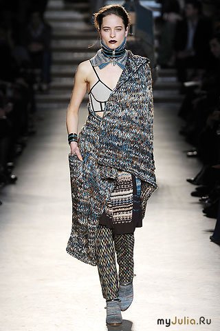 Трикотаж – незаменимый атрибут холодного времени года. Даже на минуту страшно представить, что трикотаж вдруг исчезнет из нашей жизни: в чем тогда ходить? Главное его достоинство – многообразие: из него изготавливаются и теплозащитные изделия для зимы, и легкие майки и топы – для лета, и гламурные вещи – для торжественных случаев, и нижнее белье на все случаи жизни. Даже не верится, что такой комфортный, гигиеничный материал долгое время был презираем и предназначался только для простолюдинов. Он известен был еще в древнем мире: мы знаем, что Пенелопа в ожидании Одиссея вязала покрывало. Образцы трикотажных изделий, найденные при археологических раскопках, датированы III – I вв до н.э. Однако вязаные вещи использовались на протяжении последующих веков только беднейшими слоями населения: высшее сословие снизошло до трикотажа в XVI в., причем из него изготавливали только чулки для знати вплоть до XX века. XX век стал золотым веком трикотажа: его, наконец, оценили по достоинству! Еще в 70-е годы XIX века была попытка ввести трикотаж в моду в высшем свете: англичанка Лили Лэнгри, светская львица, изготовила наряд из ткани «джерси», названной в честь одноименного острова, где материал был в ходу. Эта попытка провалилась - не всем удается стать законодательницей моды! Эльзе Скьяпарелли это удалось: она обратила внимание на красоту вязаных изделий ручной работы, изучила технику мастерства рукодельниц и внедрила изготовление этих вещей в собственном Доме моды. Именно благодаря ее деятельности трикотаж появился на подмостках мировых подиумов и завоевал весь мир. Коко Шанель первая использовала в своих разработках трикотажное полотно «джерси», чутко предугадав потребности современных женщин в комфортных, легких и немнущихся изделиях. Вот так выглядели ее знаменитые женские костюмы из "джерси": Сегодня трикотаж – незаменимый материал, используемый не только в одежде. Золотой век трикотажа продолжается и никогда не кончится, потому что возможности этого материала – безграничны! Он может быть плотным и кружевным, теплым и легким, мягким и не очень, гладким, пушистым, «кучерявым» - каким угодно! В коллекциях «Осень – зима 2010-2011» - трикотажное изобилие! Каждый дизайнер показал свое видение трикотажа в новом сезоне: у одних это – нарочито рустикальные изделия, тяготеющие к деревенскому быту, у других – яркие, многоцветные, фееричные ансамбли, у третьих – изысканный шик. А для трикотажа ничего невозможного нет, ведь в этом его прелесть: он разный! Sonia Rykiel в мире моды считается Королевой трикотажа: ее яркие предложения не могут никого оставить равнодушными. Полоски – просто супер! Для дизайнера Angela Missoni трикотаж – излюбленная тема. Чего только нет в ее коллекциях: свитера, туники, жилеты, кардиганы, леггинсы, шарфы, шапочки! Одним словом – всё! Есть чисто деревенские предложения, типа «самовяз», есть и изысканно элегантные. В коллекции от Shanel встречаются традиционно классические изделия, как, например, зеленый костюм, но есть и более простые вещи – свитера с узорами. Prada предлагает молодежные ансамбли из трикотажа - достаточно традиционные и удивительно позитивные по цветовой гамме. Поразительно выглядят утолщенные чулки и гольфы от Prada в сочетании с изящными моделями обуви. Сочетание несочетаемого! Интересные молодежные комплекты предлагаются 