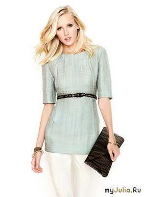 Например, моя сегодняшняя героиня. Она успешная бизнес-леди, жена, мама, подруга, журналист-любитель, путешественник на короткие и длинные дистанции и еще много-много всего. Ей не понаслышке известно, что постоянно балансируя между ролями, важно не запутаться не только в себе, но и в своем гардеробе. Моя задача – подобрать для неё такой образ, на основе которого можно будет составить один(!) гармоничный гардероб, позволяющий ей с легкостью скользить по своей занятой и интересной современной жизни. Начнем с определения цветотипа Светлая кожа с холодным подтоном и пепельно-русые [от природы] волосы (нынешнее платиновое мелирование, кстати, только усиливает общий “пепельный” эффект) говорят о том, что перед нами жещина-Лето. А орехового цвета глаза на правильном лице героини подсказывают, что она относится к подтипу Яркое Лето. Это несколько необычный подтип Лета, выбивающийся их общей характеристики женщины-Лето, и потому, иногда ошибочно принимаемый за Светлую Зиму или Осень. Женщину-Лето отличают обычно мягкие округлые черты лица, общая нежность и плавность образа, поволока во взгляде. Поэтому им очень идут летящие платья, романтические цветочные расцветки, шифон, кружево и воланы. Но в образе моей сегодняшней героини нет ни плавности, ни округлости. Наверное, поэтому богемные длинные юбки, обычно подходящие женщинам "летнего" цветотипа, конфликтуют с её внутренним образом. Чего не скажешь о верхней части наряда: корсет с его прямыми линиями (подходящими обычно женщинам-Зимам) смотрится не ней гармонично. Вот почему плавные линии и летящие силуэты я бы посоветовала заменить простыми линиями, а цветочные расцветки - геометрическими. Например, такими, как создает Missoni. И все же, отсутствие во внешности явной контрастности (кожа, волосы и глаза близки друг к другу по цвету, нет явного контраста между белками глаз и радужкой) и общий холодный/пепельный фон указывают, что правильно отнести героиню к "летнему" цветотипу. Следовательно, цветовая палитра её гардероба должна основываться на холодных тонах. А так как мы имеем дело с яркой разновидностью Лета, то выбирать нужно более насыщенные оттенки, чем те, которые обычно рекомендуют женщинам этого цветотипа. Но осторожно(!) – цвета не должны быть слишком яркие, как для цветотипа Зима – женщине-Зиме идут простые и яркие пигменты, которые “затушуют” неконтрастную внешность Лета. Героине следует обратить внимание на “сложные” глубокие оттенки холодных цветов: не серый, а стальной и графитовый, не голубой, а аквамариновый и бирюзовый, не пыльный розовый, а малиновый и цвет мальвы. Посмотрите на разницу: здесь героиня в правильном аквамариновом топе (и даже черный цвет, который обычно бледнит Лето, смотрится приемлемо в качестве дополнения). А здесь она в теплом оранжевом, не подходящем для её цветотипа *Лету следует избегать теплых тонов в образе: в одежде, в макияже и в прическе; так, при светлом мелировании важно не допускать желтизны, придерживаясь платинового оттенка Вот общая палитра подходящих героине цветов. Стандартный черный ей лучше заменить на графитовый или темно синий – оба цвета подойдут в качестве основного цвета для верхней одежды: пиджаков, брюк, юбок. А для темной обуви и аксессуаров подойдет еще и холодный коричневый (не путать с теплым коричневым - цветом молочного ш