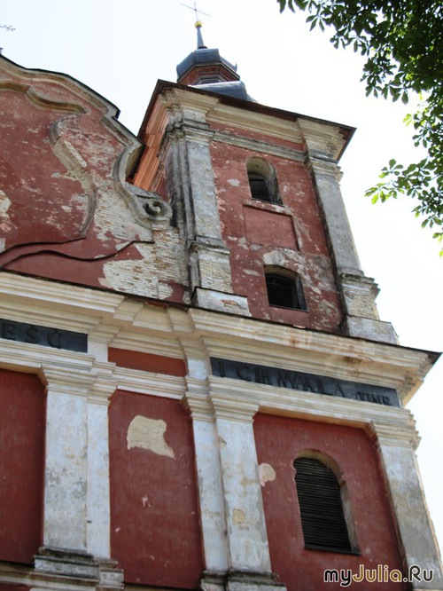 Последний день нашей поездки-экспедиции мы провели в небольшом городе под названием Дубровица. Город оказался древним. "Дубровица — 1000 лет" – такая надпись приветствовала нас на стене одного из домов при въезде в город (первое фото не моё, нашла на просторах интернета). Надо сказать, что многоэтажки для этого городка – редкость. В основном он застроен деревянными домиками, а многоквартирные трёх-пятиэтажные дома сосредоточены в основном в районах бывших фабрики и завода, ведь строились целенаправленно как "рабочие городки". К сожалению погулять по городу так как хотелось нам не удалось. На то были свои причины, но главную его достопримечательность мы всё-таки увидели. Старинный костёл Святого Иоанна, по слухам местных жителей то ли 17, то ли 18 века, находится почти в центре Дубровицы. Нам несказанно повезло проникнуть в само здание костёла, ведь оказалось, что большую часть времени он стоит закрытым и только по большим праздникам там проводит службу приезжающий из соседнего города священник. Сейчас его реставрируют, часть собора стоит в лесах, а до части ещё скорее всего не добрались. Но чудо! Когда мы подошли, он стоял открытым, буквально, настежь и я, конечно же, воспользовалась этой возможностью. По возвращении домой я начала активно искать информацию о нём. Нашла только статью на сайте города. Не густо, но кое что всё же удалось выяснить. Итак, костёл в первоначальном своём виде был построен в 1695-1742 годах по приказу маршала Великого княжества Литовского Яна Карла Дольского при поддержке и содействии Казимира Пневского, ректора польского Университета искусств. Честно говоря, я немного в недоумении по этому поводу, так как считала, что единственным художественным учебным заведением Польши, по крайней мере такого уровня и влияния, была краковская Академия изящных искусств, но она была открыта только столетие спустя. Но тем не менее, костёл был построен и изначально был белоснежным. Таким он запечатлён на рисунке 19 века. В последующие столетия он буквально переходил из рук в руки, как и сами эти территории. Для поляков был святыней, царская Россия старалась уменьшить его статус и влияние организаций, которые возникали вокруг него, при большевиках он был разграблен, и перекрашен в красный цвет, с 1939 по 1945 год на базе костёла был промышленный склад, и снова как собор он начал действовать только в 1992 году. Естественно все эти перипетии пагубно сказались на его внешнем виде и убранстве. Ценнейший витраж в главной апсиде, специально заказанный для собора в Венеции, был уничтожен в 20-е годы, а говорят, что по цене он ровнялся всем остальным затратам на постройку, повреждена оригинальная кафельная плитка на полу, оббита лепнина на фасаде и внутри храма, в неизвестном направлении исчезли многие иконы. Сейчас понемногу фасад и декор интерьера пытаются восстановить. Это центральная апсида. Вверху восстановленный витраж, а под ним единственная сохранившаяся фреска 18 века "Крещение Христа", созданная членом Ордена пиаров Лукашем Хублем. Пишут, что этот костёл был построен в стиле рококо, но кажется, что кроме огромного количества скульптур агелочков-путти его ничего не связывает с этим стилем. Нет ни красок, ни обилия завитушек и раковин, под которыми обычно не видно стен, ни камерности в самой архитектурной форме. Возможно всё это было разруш