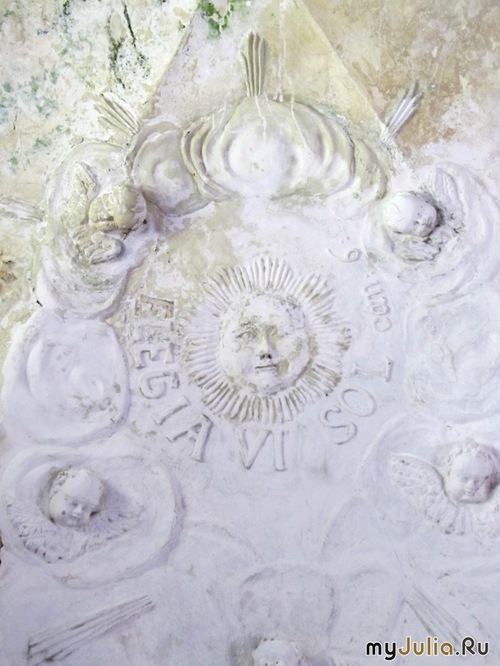 Кстати это солнышко меня заинтересовало очень. Это барельеф на своде боковой апсиды, но что он там делает я не могу понять, не могу это никак связать с традициями церковного зодчества. Хотя если строка из писания...вобщем не знаю, это солнышко вяжется у меня только с французским барокко и Людовиком 14.