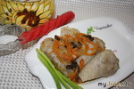Ну что вам сказать - вкуснятина! И думаю, было бы вкуснее, если б сделала точно по рецепту))). Просто у меня гречка оставалась, уже готовая, с поджаренным луком и грибами, я в нее добавила картошку тертую, сырую, чуть морковки, завернула кулечками, очень понравилось, кстати, а заправила луком, морковкой и полосками куриного филе. Так я еще голубцы не делала, но картоху внутри не угадали))), зато слопали всё. Смутное подозрение, что в постном виде будет не менее вкусно.