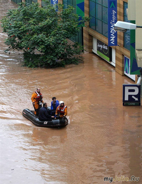 Ну и ладно, подумаешь остров! А мне и здесь хорошо! Совсем иначе зимой. Когда на улице снег и слякоть или морозы, при которых нормальные люди начинают мерзнуть лишь только взгляд их упадет на опустившийся столбик термометра. Трудно в это время представить, что есть на Земле уголки, где не бывает зимы. Где не знают гололеда. Где нет необходимости задумываться, что зимние сапоги уже не такие теплые, и шубку бы обновить пора. Где не нужно запасать на зиму дрова и выпускать своевременно воздух из батареи. Ох, можно перечислять до бесконечности и говорить о тех вещах, о которых можно благополучно забыть на острове вечной весны. Правда, если подумать, то и летом могли быть какие-то моменты, когда бы кто-то помечтал о Мадейре. - Совершенно устали от жары! Где-то есть приятное местечко? Да, конечно! Все та же Мадейра! Если температура зимой здесь около двадцати градусов, то и летом она выше двадцати восьми очень редко поднимается. Протекающий неподалеку Гольфстрим поддерживает зимой температуру воды в океане на уровне девятнадцати, а летом отдыхающих освежает приятный бриз. Каждый день планируя какое-то путешествие я задумчиво вглядывалась в серое небо. Не будет ли дождя? Но нет. Ночные тучи рассеивались. Небо сияло лазурью, солнце ласкало кожу. - Какой дождь?, - развеял мои сомнения один из гидов. Если на Мадейре должен пройти дождь, он пройдет ночью. За день, когда солнышко светит влага испаряясь сбивается в облака, ночью она может пролиться дождем, чтобы утром освободить небосклон солнцу. Слушать такое было необыкновенно приятно. И действительно во время моего двухнедельного пребывания на острове лишь иногда ночью шелестел дождь, днем светило солнце и основным эпитетом, характеризующим остров был "рай". Необыкновенная красота природы. Потрясающий ландшафт зеленого острова. Величественные горы. Глубокие ущелья. Водопады. могущественная сила природы. Маленький цветочек на тонкой ножке, ласковый луч солнца. Безграничная нежность. Рай... Растения острова великолепно вписываются в определение Рая. Хищных животных здесь нет. Рай... И все же... Наверное не бывает бочки меда без ложки дегтя. В нашем случае речь пойдет о двух ложках. События почти трехлетней давности не оставили в моей душе никакого следа. Да я наверняка слышала о них в новостях, читала. Но прочитав быстро забыла. Мало ли катастроф в мире? Поездка по острову на экскурсионном автобусе. - Видите? В ущелье новые одинаковые дома? Эти дома были построены государством для жителей оставшихся без крова в феврале 2010 года. - Этот мост тоже новый. Старый снесло наводнением в 2010 году. - Вот здесь была дорога, ее снесло наводнением в 2010 году. - Обратите внимание, бетонные каналы. Сейчас устанавливают везде, когда строят дома. С целью отвода воды, если повториться то, что было в 2010 году. Вернувшись домой я перелистала странички истории. Время действия - февраль 2010 года. Место действия - Мадейра, райский остров, превращенный стихией в ад. Средства массовой информации сообщали о непогоде, штормовом ветре, наводнении. Сотни домов были снесены селевым потоком. В столице Мадейры хаос. Мощные грязевый потоки смывают все со своего пути. Людей, автомобили... Вот несколько снимков, запечатлевших катастрофу. На остров поступает помощь. Сведения о пострадавших неоднозначны. Цифры не сходятся. Пропавших находят живыми - р