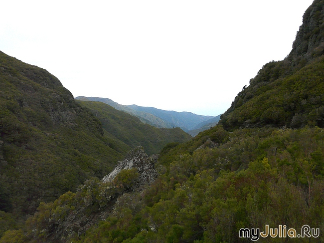 Собираясь в отпуск на Мадейру, обязательно запаситесь горными или хотя бы туристическими ботинками. В необходимости их я убедилась на собственном опыте. Хорошо, что у меня они были. И хотя на просторах интернета я не раз встречала высказывания о том, что Мадейра отпуск для респектабельных супружеских пар, это не совсем так. Респектабельных пар здесь немало, но Мадейра это не пляжный отдых. Конечно можно давить лежак с перерывом на "поесть" и подставлять бока солнышку. Но, я уверяю вас, если вы побывали на Мадейре и не совершили поход по леваде... Тогда вы просто не увидели остров. Прогулки вдоль левад для многих служат приманкой, достаточно лакомой, чтобы провести на острове отпуск и возвращаться сюда вновь и вновь. Я уже писала о разнообразии природного ландшафта острова. На Земле не так много мест, где на таком небольшом пятачке можно увидеть так много. Это как концентрированное молоко, как сжатый файл, о Господи, чего мелочиться - целый мир на одном островке. Ну вот, Остапа опять понесло. Я уже писала о своей прогулке с девушкой, назвавшей себя Луизой. Такую прогулку осилят практически все. Можно брать с собой детей. Дорожка удобная, широкая. Гид предупредит о луже и свисающих ветках. Осторожно! Сегодня мне хочется рассказать о маршруте к 25-ти источникам. Его предлагают, как маршрут средней сложности. Из разговора с соседом по столику во время ужина накануне. - Вы идете к Двадцати пяти источникам? Очень интересно будет встретиться с Вами завтра вечером. Обычно с этого маршрута приходят полуживые. Соседи мои были очень приятные люди. Супруги. Муж немного любопытный. Хотя я принимала его любопытство с удовольствием и расценивала его как интерес. Жене было немного неудобно и она время от времени просила извинить ее мужа за его любопытство. Они сами не ходили на большие расстояния по сложным маршрутам, у него после травмы нога не шла. Это он так выражался. Он смотрел на мои ноги в туфлях на каблуках (к ужину все наряжались) и замечал: - Я видел Вас в другой обуви, вчера у моря. Но это тоже не та обувь в которой можно пойти к источникам. Его жена розовела и извинялась, а я уверяла его, что у меня есть горные ботинки. Я обещала милым соседям специально для них посчитать действительно ли источников двадцать пять. К сожалению, обещание мне выполнить не удалось. Но все по-порядку. Наш путь лежал в западном направлении. Местечко, к которому мы направлялись носит название Рабакаль и находится на высоте 1070 метров над уровнем моря. Едем на автобусе. Из автобуса вышли на плато и Луиза (ага, опять она) показала нам широко размахнувшись рукой: - Туда вот пойдем. Я впервые увидела Мадейру именно с такой стороны. Лес. Лес на горах, в ущельях, везде куда ни посмотришь. Наверное такой зеленой увидели ее первопроходцы когда давали название Мадейра - дерево, лес. Погода в тот день нас не очень баловала. Солнечные лучи время от времени пробивались сквозь облака, метили горы светлыми островками, но не согревали. Хотя, наверняка, сказывалась высота. Ну и тень, по лесу же шли. Левада вдоль которой мы направлялись сильно отличалась от той, внизу. Она была шире и полноводнее. Поток прозрачной воды навевал мысль о горной речке. А здесь еще Луиза: - Из левады вы можете пить. Только осторожнее, форели! Вы же хотите пить, а не есть? Форели действительно встречались, не так чтобы зачерпнут