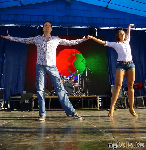 Танцы комментировать сложно... Но я честно заснял все самое интересное - все, на что хватило памяти и зарядки на двух камерах (надо было видеть, как я пытался удержать равновесие на деревянной приступочке перед сценой с видеокамерой и "мыльницей" в обеих руках, вытянутых над головой! А как же? Ведь самые интересные моменты надо и на видео заснять, и красивые фотки сделать . Причем с близкого расстояния и желательно не снизу вверх, а фронтально, да еще не поймать в кадр других фотографов и бегающих перед сценой детей ). Не кривя душой могу признаться, что думал в этот момент о вас. И старался сделать все возможное, чтобы вы тоже как бы там побывали. Где и когда еще в таком количестве можно увидеть танцевальные коллективы из разных городов Псковской области? (Доча, доедая мой пончик и запивая его моим лимонадом , понимающе хмыкает: "Для "Джулии" своей снимаешь?" )