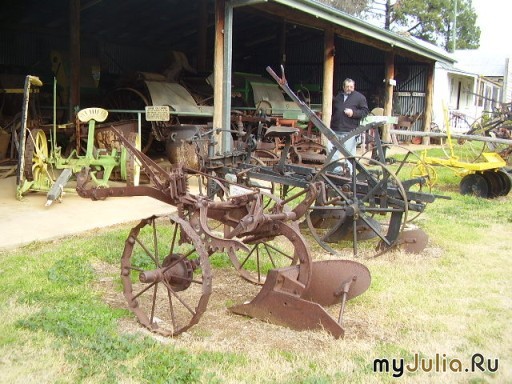 Впечатлений об Австралии накопилось много. Одурев от вязания пальто, решила продолжить рассказ о путешествии по австралийской глубинке. Кажется, я уже упоминала о трепетном отношении австралийцев к своей недолгой истории. Сохраняют всё, что можно. На каждой ферме обязательно имеется допотопная сеялка или борона, или что там ещё бывает, в витринах магазинов - старые вещи от прежних владельцев.Особенно греет душу лицезрение витрины аптеки, где лежит всякий старый аптекарский инвентарь и книга заказов с еврейской фамилией владельца... Вернусь к глубинке. Одним из пунктов маршрута был старый шахтёрский городок Gulgong (280 км от Сиднея или 345 км от того места, где я живу, на северо-запад). Поездка туда и сам город заслуживают отдельного описания. Скажу лишь, что это заповедный город. Все здания сохраняются в том же виде, как были построены во времена оны. Внутри можно делать всё, что угодно, но внешний вид в результате ремонтов не меняется. Этот рассказ - о Музее пионеров. Здание вы видите на первом снимке. Особенно греет душу лицезрение витрины аптеки, где лежит всякий старый аптекарский инвентарь и книга заказов с еврейской фамилией владельца... Внутри я ходила, разинув рот. "Рука бойцов колоть устала", то есть фотографировала без перерыва. Там собрано всё, что только можно себе вообразить: любые предметы быта (посуда, бутылки, одежда, мебель и т.д.); минералы и всякие окаменелости, добытые в местных золотых рудниках; всевозможная сельскохозяйственная техника - от косы и сепаратора до трактора; инструменты и изделия кузнецов и прочих ремесленников, даже образцы кирпичей; оружие; локомобили и паровые машины; устроены комнаты - жилые, пекарня, больница, пожарная команда, телефонная станция и т.п. со всем полагающимся скарбом; транспортные средства - кареты и повозки от самых маленьких до грузовых; если я что и забыла - не сомневайтесь, там оно есть! Надо сказать, что за полгода в Австралии я видела много старых вещей, но чувство узнавания испытывала редко. Думаю, потому, что вещи эти - из Англии или подобные им; всё же на континенте и в Англии многое сильно отличалось. Радовалась как дитя, увидев в музее целый ряд старинных "Зингеров"; думаю, всем нам знакомо это изделие или его родная дочь - ножная машинка Подольского завода (у меня такая в Тюмени стоит, моя ровесница, работает до сих пор). Воспоминания детства выжали слезу, когда увидела допотопнейшую машинку с валиками и ручкой для отжима белья: когда бабушка стирала - мне доверялось ручку крутить... Ещё батарея цинковых шаек знакомой показалась... Не могу похвастаться глубокими знаниями, но я интересуюсь военной историей, особенно с тех пор, как стали доступны сведения об участии разных стран во Второй мировой войне. Конечно, живя в Беэр-Шеве, невозможно ничего не знать о военной истории Австралии. С изумлением узнала недавно о том, что Австралия послала больше всех солдат на войну (в процентах к населению страны). Здесь очень трепетно относятся к своим солдатам (думаю и про это написать). В Музее пионеров собраны вещи солдат с разных войн, на стенах висят доски с именами местных жителей, погибших на войне. Там городок - несколько улиц, но люди себя уважают! При виде этих досок (они видны на одном из снимков). я заплакала, вспомнив, что в России так и не похоронили миллионы солдат... Только добровольцы ищут и хор