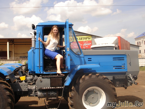 Ааа) Такая хрупкая девушка и со слабостью к тракторам. просто супер. А здорово будет в трактор розовенький навигатор, называющий водителя "лапочкой"? Не, правда, и само фото, и идея замечательны и небанальны.