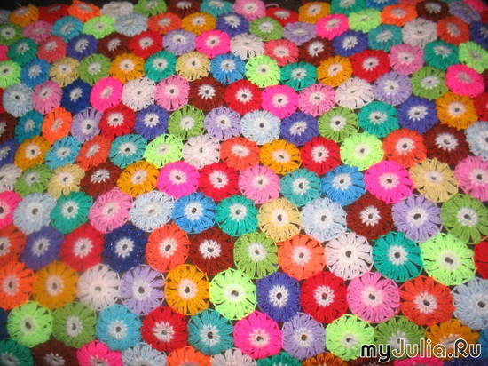 В ТВшопе очень давно купила такие штучки специальные, как грибок со штырями по краю. Наматывается нитка, крючком закрепляем серединку, потом края.