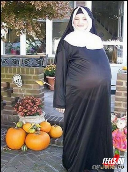 Ага! Она тыкву подложила под рясу! Хитрюга))