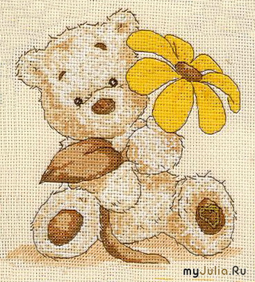 решила в следующий раз использовать меланжевую нитку для всего тела, а цветок и следочки вышивать по ключу