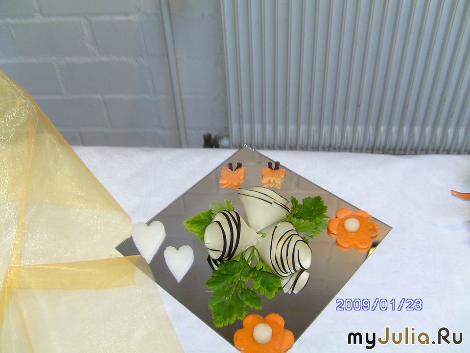 Украшения из овощей и фруктов на зеркалах и стеклах