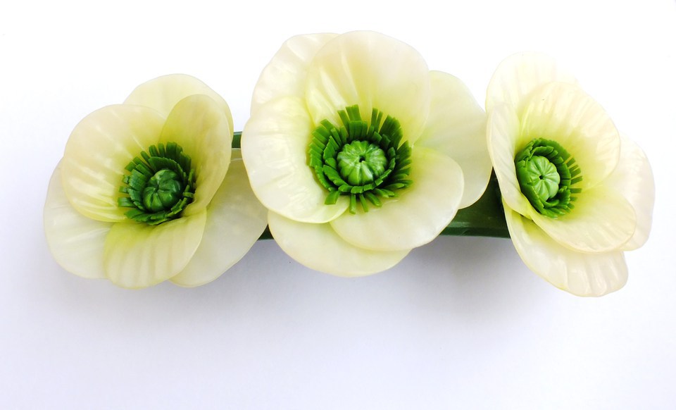 «Заколка для волос "Белые маки" из полимерной глины»