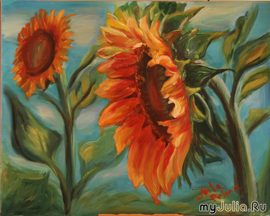 Фото«Подсолнухи. Масло, Картон. 44х54. 2012г.»