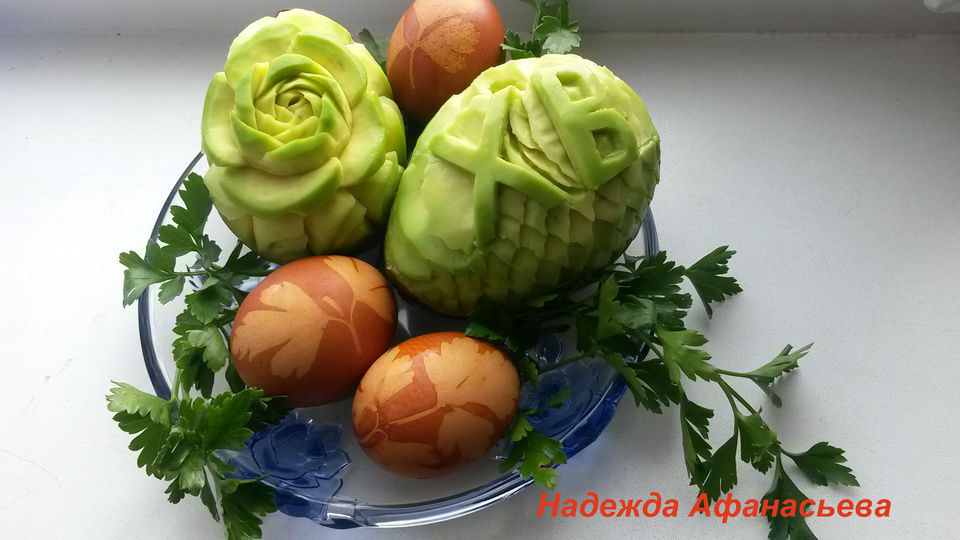Фото«Пасха. Авокадо, яйца крашенные луком и петрушкой»