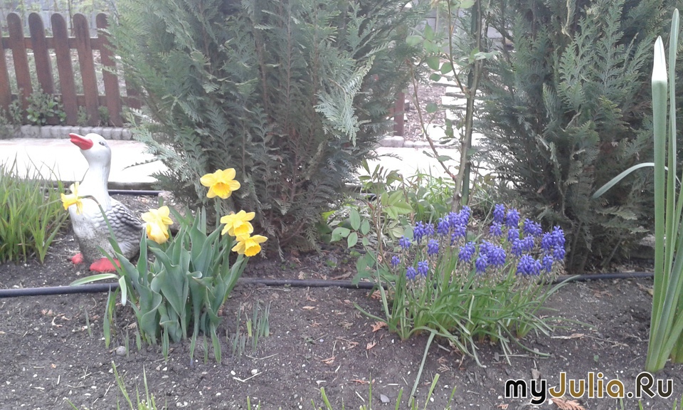 У меня мышиный гиацинт будет помельче. В этом году у меня несколько сортов гиацинтов не вышли. Только осталось всего три сорта: белые, синие, тёмно-розовые.