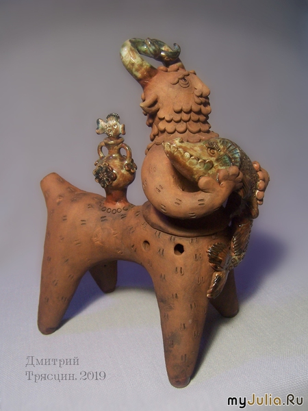 Фото«Керамическая свистулька Китоврас с рыбой»
