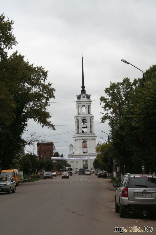 Еще меньше часа пути от Лежнева - и мы въезжаем в еще один райцентр Ивановской области - город Шую. Шуя Основная достопримечательность города - колокольня Воскресенского собора, если не ошибаюсь, третья по высоте в России - 106 метров. Колокольню видно за много километров, с какой стороны не подъезжай к городу. Вид с главной улицы города - ул. Свердлова