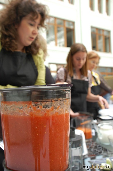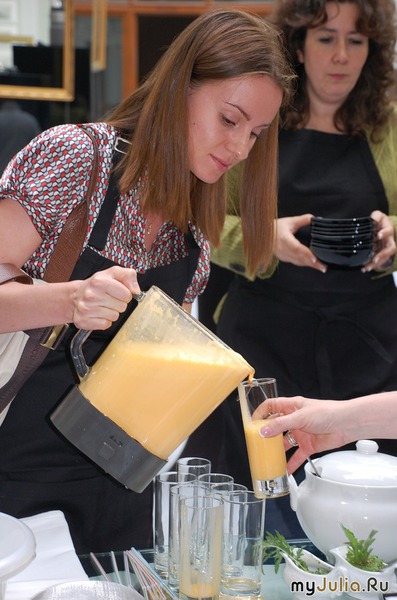 Техника оправдала самые смелые ожидания: умная и послушная, она оказалась отличным помощником даже в ситуации, когда приготовление пищи ни в чьи планы не входило. И всё это быстро, удобно, легко, "с одной кнопки" и очень позитивно. Предлагаю фото-отчет с мероприятия: начало, конечно, с представления техники. Представитель компании Philips Ян Виллем Докхеер рассказывает о новинках а следом присутствующим предлагается надеть фартуки. Всем, без исключения. Даже хозяевам мероприятия. Продукты уже ждут своих поваров Затем - краткий сеанс ознакомления с инструкциями от приборов. Они, конечно, умные и современные, но руководство нужно прочитать. Вот такая хитрая техника. Беглый взгляд на продукты - и вперед, творческая кулинарная мысль! Кто то решил готовить суп, кто-то - фруктовый десерт, кто-то - пиццу. А кто-то "замахнулся" на шоколадное печенье. В помощь дамам был приглашен шеф-повар московского ресторана Денис Крупеня, который помогал работать с техникой и, собственно, готовить. На обед - суп из тыквы. Пюре из бананов и ежевики: где вы сможете такое купить? Нигде, только приготовить на собственной кухне. А клубничный десерт уже пошел "на бис" Вот уже почти всё готово: Запах - первый показатель аппетитности Параллельно с финальными аккордами готовки можно прибрать стол для дегустации И вот, наконец, блюда на столе. Всё, что приготовили гости на презентации, образовало большой натюрморт: в начале мероприятия стояла просто упстая рама, постепенно результаты кулинарных подвигов журналистов занимали свои места на картине. Как этот тыквенный суп. Всё-всё-всё без исключения можно (и нужно было) попробовать. Куда приятнее обедать, заслужив обед, и приготовив его своими руками. Осторожно пробуем: Вкусно! Приятного всем аппетита Томатный суп был очень хорош: я пробовала. Встреча удалась! Рейтинг: +23 Отправить другуСсылка и анонс этого материала будут отправлены вашему другу по электронной почте. |