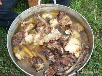 Вместо эпиграфа - короткий диалог двух любящих людейЛюбимая моя бабушка: – Внучка, ты что хочешь сегодня на завтрак? Жареную картошку с грибами или яичницу-глазунью? Я: – Картошку с грибами, бабуль… (Пауза из кухни) Бабушка: - …А картошки нет... Давай лучше яичницу? Я: - Ба, а зачем ты мне тогда картошку предлагаешь, если ее нет? (Снова пауза, потом грустно так): - Надеялась, ты выберешь жареные яйца… Ох, и рискованно была предложена подобная тема на очередной литературный конкурс! Ведь сколько воспоминаний всколыхнула она в тридцатипятилетней женской душе ! От глубокого отрочества до почтенного нынешнего возраста «кухонные» казусы не оставляют меня и мою семью своим посещением… Есть о чем порассказать. Ан вот возьму, да не уложусь в одну часть? Ведь утомлю воспоминаниями всех читающих?.. Ну, не откладывая дела в дальний буфет, да пока чай в Ваших чашках не остыл, начну сие веселое повествование… В нем предложу терпеливому читателю отведать лучшего обеда из трех блюд, да с закусочкой, да с десертом. Все, как положено. Не уходите, гости дорогие, будет вкусно и …смешно! Закуска на смотринах Одна из моих чудаковатых подруг все умоляла меня (зная мою любовь к сватовству, да к нетерпению людского одиночества) познакомить ее с каким-нибудь «женихом». А в день, когда я заманила-таки «жениха» к себе домой, обещая ему вкусный обед и интересное знакомство, подруга вдруг решила «повыкобениваться» и поиграть «в Золушку». То есть придти «на сватовство» как можно позже, чтобы «жених» помучился, ожидаючи. Мы с молодым человеком, понятное дело, были не в курсе задумки моей подружки и потому, прождав безуспешно добрую пару часов «невесту без места», принялись за уплетание моего сварганенного обеда. Что ж добру-то пропадать? Наевшийся от пуза «жених» отбыл восвояси. А к вечеру наконец-то нарисовалась незадачливая «ндравная Золушка». Я, по понятным причинам, была насуплена и не расположена ухаживать сызнова уже за другой гостьей и продолжала сумрачно взирать в экран телевизора. Но моя подружка, нимало не смутясь, по-свойски пошла порыться у меня на кухне, так как кушать ей хотелось изрядно. Чем-то там погремела, пошебуршалась. Что нашла, видно, то и покушала. Уложила я запоздалую гостью спать. А утром она, желая загладить свою вину передо мною, решила приподнять мне настроение похвалой: - Слушай, Руфка. Вчера ты сердитая на меня была, не стала тебе говорить… У тебя там что-то такое вкусное было! Какая-то закуска интересная что ли?… По вкусу будто бешбармак, но с картошкой, поломанными лепешками и главная в нем вкуснотень – зеленый горошек! Дай рецепт закуски, а? Я оторопело взираю на нее, ничего не понимая - бешбармак с горошком «Бондюэль»! Такой «закуски» у меня в меню не было. Метнулась на кухню. Ба-атюшки! Подружка с голодухи срубала вчера кастрюлю еды, которую я приготовила для своей немецкой овчарки. А в кастрюльку эту я, прибирая стол после «жениха», свалила все остатки блюд, которые оставались на тарелках. Ну что ж? Гулящему на столбе! Вернее, прогулявшей… На первое подадим БОРЩ! БОРЩЕЦ ПО-САМАРСКИ. Довелось как-то нам с мамой пожить в летнее время у знакомых в поселке под Самарой (тогда это был город Куйбышев). Такая исконно русская семья. Хозяева всё хотели нас, гостей своих, угостить на славу. Спрашивают по приезду - что любим покушать? «БОРЩ!» - воскликнули мы с
