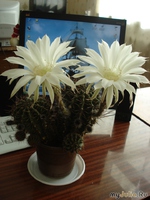 Еще одно из "цветочных" воспоминаний нашла. У подружки на работе кактус разошелся не на шутку этим летом! Цвел и цвел! Раза три это точно. Вот мы и решили запечатлеть этот радостный для нас момент)))