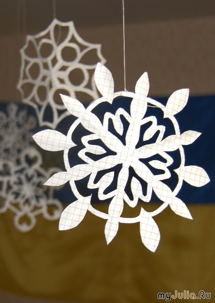 Снежинки я вырезаю давно, и уже не помню, когда они стали выглядеть так, как сейчас. Это я к тому, что учили меня так же, как всех, на тех же уроках труда. Все их хвалят, только никто ни разу не спрашивал, как я их делаю, и не просил научить. На прошлой неделе запрос поступил и я уселась чесать репу: как же я их делаю? И как это объяснить? Я не рисую никаких планов, или схем, я вырезаю их перед телеком, практически не глядя. Учтите, что я просто очень давно это делаю. Все же, если касается секретов, то я попробую сформулировать тезисы по вырезанию снежинок, которые вчера наразмышляпила под их собсно вырезание.