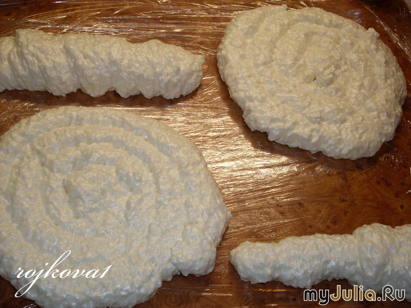 В качестве основы можно использовать пенопласт, монтажную пену после засыхания. Пена предпочтительнее, легко придать форму, не крошится, как пенопласт. Берем баллон пены, не обязательно дорогой. На противень расстилаем пищевую пленку и распределяем пену. Не забудьте, что объем увеличивается. Лучше сразу придавать нужную форму.