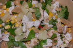 На 500 граммов куриного филе: 1 банка ананасов кусочками 1 банка маринованных шампиньонов 1 банка кукурузы 1 пучок салата (айсберг, дуболистный, китайская капуста, всё пойдет) Курицу я варю со специями. На 500 граммов курицы - 4 столовые ложки разных специй, смело. Одна из ложек - перец. Варю курицу как следует, чтобы была помягче. Пока она варится, выкладываю в миску просушенные в дуршлаге шампиньоны (если они мелкие, то можно их не резать), ананас, кукурузу и листовой салат, который рву руками. Когда курица сварена и остужена, она отправляется к смеси овощей и хорошо с ними перемешивается. Заправка салата предполагает несколько вариантов, в зависимости от пристрастий едоков. Самы простой и традиционный вариант - 1. Майонез. Так как в нашей семье антимайонезный строй, мы заправляем салат по другому. 2. Соус из бульона. Для этого соуса надо сохранить бульон, в котором варилась курица. Полстакана бульона смешать со стаканом сметаны. Так очень любит мой папа. 3. Йогурт. Люблю заправлять салат кефирным йогуртом без отдушек, Активией, к примеру. На чей-то вкус это пресновато, но я очень люблю. Высший пилотаж - это ананасовый йогурт, но это совсем для гурманов. Поверьте, вкусно. Кушайте и не поправляйтесь!)) Рейтинг: +15 Отправить другуСсылка и анонс этого материала будут отправлены вашему другу по электронной почте. |