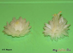 С тех пор прошло много лет, и с позиции взрослого человека я признаю, что в формировании моей личности большая заслуга не только семьи (родителей, сестры, родственников), но и Ларисы Александровны. И вот вчера Лариса привезла в Ростов сына на Олимпиаду по русскому языку, а после этого мероприятия они заглянули ко мне в гости. Пока переволновавшийся Никита отдыхал, мы с Ларисой обменивались новостями. Разумеется, я показала подруге интересный сайт, где можно найти множество идей по украшению блюд, продемонстрировала ножи для карвинга и некоторые приемы работы с ними. Рассматривая книжки, Лариса недоверчиво спрашивала: - И что, ты тоже так можешь? - Конечно! И ты можешь. Хочешь попробовать? - Ну давай попробуем… Мы переместились на кухню, и Лариса начала вырезать свой первый цветочек треугольным ножом. По задумке, это должна была быть лилия из лука. Заметив необычную суету, к нам подтянулся Никита – он тоже любит все, что связано с кулинарией. Никите был выдан овальный нож и задание вырезать маргаритку. Лариса резала со смехом, сын – со слезами. Закончив резьбу, начинающие карвингисты положили цветы в холодную воду и убрали миску в холодильник. Некоторое время спустя Никита достал миску, и мы все стали рассматривать: что же получилось? Никите маргаритка удалась: А Лариса подошла к процессу творчески и «изобрела» совсем не лилию, а какой-то необыкновенный цветочек. Что-то он мне напоминает, вот только не могу пока сформулировать – что же это… Карвинг моим гостям понравился, наша группа – тоже. Надеюсь, у нас скоро появится новый участник