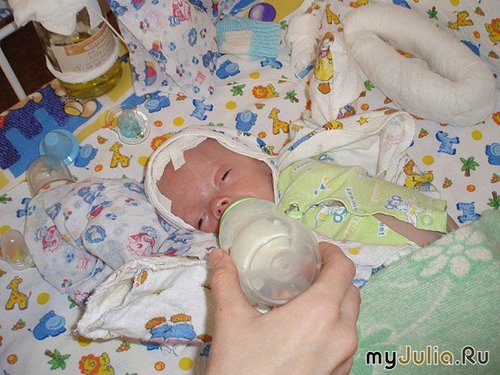 Просматривала недавно информацию с сайтов о помощи больным детям. Разные детки, разные болезни и просят за них мамы и папы, бабушки и дедушки. А не стыдно ли просить? Когда человек перешагивает через себя и начинает просить помощи у всех подряд? А не ложь ли? А как решить кому помочь, а кого "за борт"? И будет ли важная помощь в твои 200-300-1000 рублей, ведь суммы иногда миллионные указаны...Знаю, что сейчас у многих мам сердце сжалось... А вдруг с моим сыном или дочерью, внуком или внучкой, племянником или племянницей что-то подобное случится не дай Бог? Много мыслей и вопросов на эту тему... Но недавно мои соперники по игре "Дозор" попросили... Попросили помочь их 4-месячному малышу Илье, которому поставили диагноз: "Выраженная вентрикуломегалия". Мы помогаем как можем: кто деньгами, кто памперсами. Собранна энная сумма денег... Может и стыдно просить, но я попрошу: помогите! Помогите Илюшке! Молодые родители Сергей и Маша сколько могли сами боролись, но сейчас им нужна помощь!!! Очень нужна!!! Сергей Рыбаков написал. Хочу рассказать вам нашу историю: Илюшка родился 5.09.09 на сроке 30 недель. Все при рождении 1200 г. Лежали в реанимации, у нас не раскрылись легкие. Носили молочко раз в день, пускали повидаться маму с ребенком полчасика в день. Все шло удовлетворительно. После реанимации нас перевели в 3-е отделение для недоношенных деток. Маме посоветовали не ложиться к ребенку, а также только приносить молочко. Настоятельно так рекомендовали, при этом в отделении был карантин по ОРВИ и бесплатных палат на тот момент не было. Поддавшись на уговоры, мы решили пару дней подождать, но потом почувствовав неладное решились на платную палату только бы находиться вместе с сынулей. Когда мама легла к ребеночку у нас начала стремительно расти головка. Мы попросили предоставить нам нейрохирурга, но нам ответили что нейрохирург редкость и пару дней для нас ничего не решит. Своими силами нашли нейрохирурга, он нас пропунктировал и сдали анализ ликвора на посев на вирусную инфекцию. Оказалось, что от мамы ребеночку передался Цитомегаловирус. Необходим был срочно препарат Цитотект. Стоимость цитотекта у нас в области, где его «днем с огнем» не достать около 15 тыс. руб ампула. В Москве он гараздо дешевле около 10 тыс. руб. Поехали в Москву, закупили препарат на общую сумму 35 т.р. (вместе с дорогой) и привезли в Тольятти. Препарат прокапали, но этого оказалось мало, понадобился повторный курс лечения этим препаратом. Закупили ещё партию, прокапали, вирусную инфекцию вроде победили, но вирус успел наделать в маленькой головке много дел. У нас образовались многочисленные кисты. Больше всего в лобной части. Лобная часть отвечает за зрение, слух и другие органы чувств. На мою просьбу отпустить нас в Ульяновск врачи ответили отказом, хотя я успел договориться с реанимобилем с кювезом и бригадой врачей. Врачи нас не отпускали, а реанимобиль не вез без санкции врачей. Так мы оказались привязаны к больнице в которой нет постоянного нейрохирурга, он к нам приезжал. Потом понадобилось установить дренаж. Нас перевели в реанимацию и установили дренаж.. Дреннаж вскоре перестал функционировать. В реанимации нам умудрились сломать ногу. Лекарством вымыло весь кальций из организма и из-за чьего-то халатного обращения у нас сломалась ножка. Виноваты не врачи. Врачи в реанимации просто супер, он