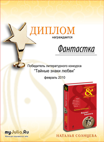 Вы знаете, что сны бывают вещими? Бывают, бывают… И камни умеют говорить… И коты… Карты и ведьмы не молчат, конечно же! И ангелы – они здесь, они могут помочь… Все истории, представленные на конкурс – интересны, все заслуживают внимания. Поэтому очень сложно выбрать лучшие. Но в любом случае, нужно сделать выбор, и мы его делаем. Итак, книгу Натальи Солнцевой «Амулет викинга» серии «Артефакт&Детектив» и общение с мастером Демонессой (ответы на вопросы) и диплом получает Фантастка с ее историей Сновидения. Знаки судьбы Второе место, книгу «Амулет викинга» и прогноз на год от Демонессы выигрывает HelenF Предчувствие любви. Также она получает диплом от организатора конкурса. Третье место, книгу Натальи Солнцевой, прогноз на год от Демонессы и диплом получает mashura за историю «Это ты». Демонесса выбрала понравившегося ей участника и он может получить у нее гадание Таро. В этом конкурсе победителем по мнению Демонессы становится mashura за историю «Это ты». Она получит гадание по кошачьей колоде Таро. Напоминаем, что каждый участник конкурса может выбрать карту «Таро Натальи Солнцевой» и сообщить ее номер Демонессе. В личном сообщении участник получит фразу-пророчество. Кто решился? Поздравляем победителей! Просьба всех победителей прислать свои координаты (ФИО, адрес и контактный телефон) мне по системе личных сообщений. Рейтинг: +20 Отправить другуСсылка и анонс этого материала будут отправлены вашему другу по электронной почте. |