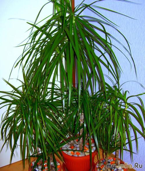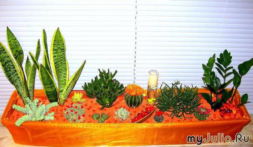 Начну со всем известных хлорофитумов - хохлатого, Бонни и обычного зеленого. Сансевиерия трехполосая - изящное, стильное, и тем не менее очень некапризное растение. Крассулы - портулаковая и Хоббит. Растут практически "сами по себе", без моего вмешательства Полив очень редкий, зато рост - очень быстрый для суккулентов!Это растение я так и не смогла определить точно. То ли арека, то ли хомедорея, то ли это вообще одно и тоже А вот так мы росли:Лавровишня и лавр. Фикусы - Даниель и Голден Кинг, Твайлайт и Анастазья заплетены в косичку, и особенно красивый экземпляр - фикус Барок с закрученными листьями! А вот название последнего не помню, но именно этот сорт часто выращивают в форме бонсаи. Шлюмбергеры и рипсалис (рипсалис, правда, у меня почему-то не цветет )Из марантовых у меня обитают строманта триколор, калатея Варшевича, калатея Сетоза и алоказия. Особенно капризной, кстати, оказалась калатея Варшевича. Влажность любит, но опрыскивать нельзя; без света не растет, но даже в тени листья опускает. После долгих наших с ней "бесед с пристрастием" я отдала ее маме в ванную комнату - там всегда тепло, влажно и окно есть ![]() Два сорта каланхое: один обычный, с красными цветочками - совсем крошка, взяла летом черенками у сестры и сейчас он уже зацвел, и один - каланхое Мангини Мирабелла, цветет необыкновенно изящными колокольчиками. А теперь - мои любимые драцены. Их у меня множество сортов: Маргината, Песнь Индии, триколор, деремская Вайт Страйп, Сандериана вариегатная, Сандериана "Lucky Bamboo" в воде, Лемон Лайм и две малютки с очень темными листьми, только вот их сорт не могу определить. Люблю их за неприхотливость, разнообразие форм и расцветок и быстрый рост. Перехожу к лианам. За что люблю лианы - так это умопомрачительный быстрый рост и способность приспосабливаться к любому освещению. Хотя с обычным плющом у нас дружба не сложилась, как-то он мне страшно разонравился и я и его маме подарила На следующих фотографиях: эпипремнум золотистый, эпипремнум золотистый на опоре, эпипремнум Марбл Квин, сциндапсус Пикта, огромный филодендрон на опоре и плющи различных сортов. Юкка Диффенбахия Аспидистра Замиокулькас Шеффлера Нолина/Бокарнея Молочай Тригона Несколько кактусов (увы, их названий не знаю) и хавортия. Как-то увлеклась королевской пеларгонией - в цвету она необыкновенно красива, но зимой с ней мороки стольки, что я решила просто переселить ее на балкон, где она прекрасно себя чувствует летом. И вот такой садик с кактусами и суккулентами. Некоторые растения в нем уже сильно разрослись и их пришлось пересадить, на днях сделаю новое фото садика и обязательно добавлю сюда ![]() Вот такие они, мои "зеленые любимцы"