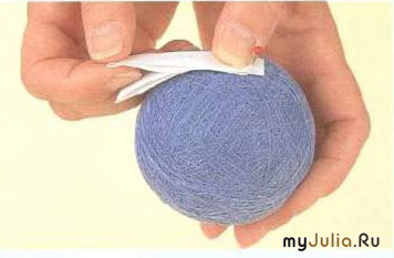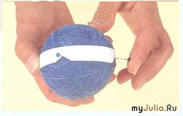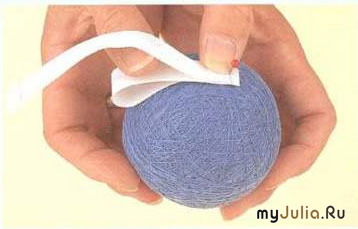 1. Традиционные узоры темари строятся по геометрическим схемам, поэтому сначала нужно разметить шар с помощью направляющих нитей. Для измерения используйте бумажную ленту шириной около 10 мм и такой длины, чтобы ее можно было обернуть вокруг шара с нахлестом.