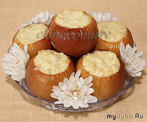 ПОНАДОБИТСЯ: яблоки сладкие средние 8 шт. творог обезжиренный 200 г. яйцо 1 шт. ванильный сахар 25 г. мёд или любой джем 3 стол.л. ПРИГОТОВЛЕНИЕ: яблоки помыть,срезать верхушку и вынуть часть большую часть мякоти,убрать сердцевину,половину мякоти мелко покрошить,смешать с творогом,яйцом,ванильным сахаром и медом,заполнить смесью яблоки до верха,поставить в разогретую духовку до +200 гр. и выпекать 30 минут. Получается ароматный и вкусный десерт!!!