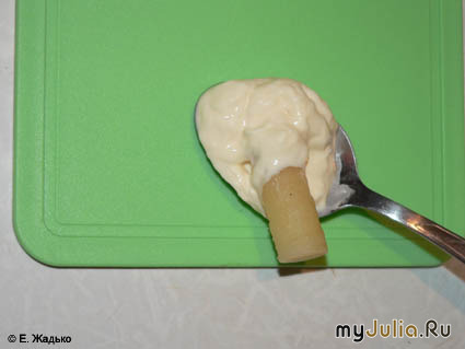 Предлагаю еще один вариант оформления мухоморов (первый был представлен в записи «Крестьянка: «Цветы» из овощей» 16 декабря 2009 года - http://www.myjulia.ru/post/173354/). Вам потребуются: - карбовочный нож для удаления сердцевины яблок, - помидоры, - картофель, - зелень укропа или петрушки, - майонез или сметана, - спичка. 1. Карбовочным ножом вырежьте из очищенного картофеля ножки мухоморов. 2. Отварите ножки в подсоленной воде, слейте воду и остудите картофель. Ножки с одной стороны окуните в майонез или сметану. 3. Мелко-мелко нарежьте пучок укропа, насыпьте его на тарелку. Покрытые майонезом ножки посыпьте укропом. 4. Поставьте ножки грибов на тарелку с укропом. Если ножки получились неустойчивыми, можно сначала положить на тарелку толстый кружок огурца, а затем с помощью зубочистки закрепить на нем картофельные ножки. 5. Помойте помидор и карбовочным ножом сделайте надрез со стороны плодоножки на глубину 1,5-2 см. Удалите плодоножку. 6. Наденьте помидоры на ножки и с помощью спички нарисуйте на них точки майонезом. Если нужно, чтобы мухоморы постояли подольше, можно вместо майонеза воспользоваться мелко порубленным яичным белком. Рейтинг: +19 Отправить другуСсылка и анонс этого материала будут отправлены вашему другу по электронной почте. |