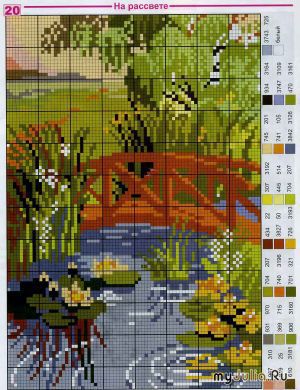 Для того, чтобы сделать такую картину бисером, вам понадобиться: - схема(предоставлена ниже) - бисер (белый, черный, синий, голубой, темно-зеленый, зеленый, свтло-зеленый, болотневый, коричневый, оранжевый, светло-коричневый, желтый, бледно-желтый, бледно-розовый, серый) - клей ПВА - плотный картон - игла (чтобы нанизывать бисер) - бесцветный лак Вот схема для этой картины: Для начала распечатайте схему на принтере, если есть возможность на цветном, так вам удобнее буде клеить. А если схема получилось черно-белой, то по клеточкам расскрасьте ее цветными карандашами, но очень внимательно, чтобы рисунок был правильным. Приклейте ее на плотный картон. Я использовала от картонного ящика. И вырежьте по рисунку. Можно начинать клеить. Нужно чтобы одна клеточка соответствовала одной бисеринке. Если у вас такого не получилось, то выкладывайте картину рядами, чтобы не было пропущенного места. А если все нормально, то можете выкладывать по цветам. Для меня так было удобнее. Я клеила бисер дырочками вверх, но можно попробывать приклить его ребром,думаю так тоже получиться красиво. Когда все приклите и клей полностью высохнет, то вскройте картину бесцветным лаком и все готово! Но не покрывайте картину, когда клей еще не высох, так как вы можете сдернуть не приклеившиеся бисиринки. Удачи в новых начинаниях! Рейтинг: 0 Отправить другуСсылка и анонс этого материала будут отправлены вашему другу по электронной почте.  |