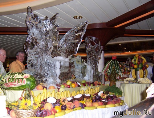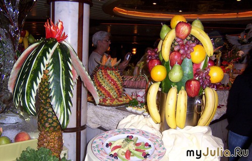 На корабле в круизе нам устроили кулинарное шоу, причём в 12.00 ночи. Всю вот эту красоту можно было пробовать, но, как вы сами понимаете, ночью аппетита немного...