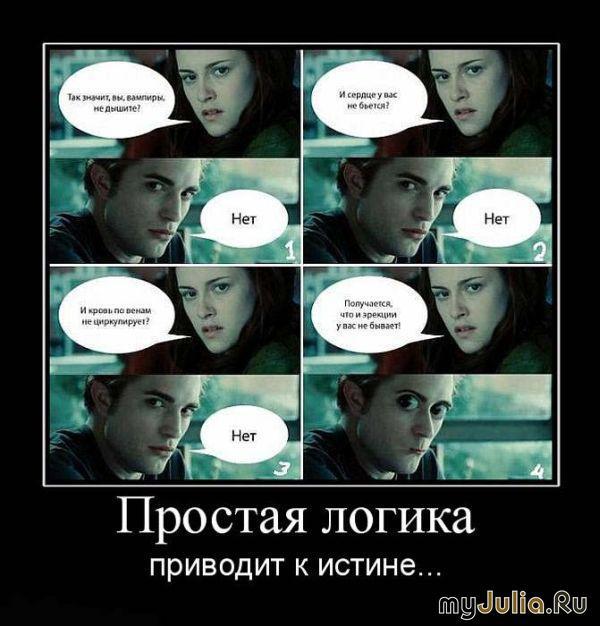 Сумерки – это история любви вампира – Эдварда Калена и простой девушки – Беллы Свон. Она приехала в небольшой город, к отцу. В школе она повстречала загадочного, но красивого Эдварда. А он оказался вампиром, и Белла для него была новой жертвой. Но он не хочет допустить, чтобы они были вместе, он боится раскрыть секрет вампира, хотя на самом деле его очень тянет к ней. Он наконец-то за 90 лет нашел ту единственную родственную душу. Но Эдвард опасается, что не устоит перед ее запахом и сделает с ней то, что сделал бы каждый вампир с жертвой. Надеясь на то, что его тайна оттолкнет Беллу, Эдвард решает ей открыться. Но она влюбляется в него еще больше. И они становятся очень милой парой. Новолуние Во второй части – Новолуние, Эдвард предлагает Белле расстаться, она замыкается в себе, но он тоже сделал это не ради удовольствия. Он хотел оградить Беллу от опасностей, из-за вампиров, но те самым толкает ее на «глупости». Она понимает, что, только, идя на риск, может увидеть своего любимого. Белла дорожит как любовью Эдварда, так и дружбой оборотня – Джейкоба. Но Джейкоб давно влюблен в Беллу и хочет быть рядом с ней. Тем самым Белла толкает на борьбу вампиров и оборотней. Но Белла не отступит от своей мечты – стать такой же, как и Эдвард – вампиром. Это единственная возможность быть рядом с ним навеки. Эдвард, неправильно подумав о том, что Белла и Джейкоб вместе, пытается выдать себя людям, тем самым обрекая себя на смерть. Но Белла вовремя спасает его и ... Жанр Это прекрасный романтический фильм! Здесь очень точно подобрали актеров, и они справились со своей ролью. Жанр «Сумерек» - многолик. Есть элементы ужаса, фэнтези и, конечно же, главный – мелодрама. Фильм сумерки состоит из нескольких частей: •Новолуние •Затмение •Рассвет •Солнце полуночи Здесь много говорят о смерти, но ведь отдать жизнь за любимого - не самая худшая смерть. Фильм и Роли В главных ролях: Кристин Стюарт – БЕЛЛА СВОН. Известна по фильмам «Комната страха», «Однажды в Голливуде» и многих других. Роберт Пэттинсон – ЭДВАРД КАЛЛЕН. Играл роль в фильмах «Наш городок», «Гарри Потер», «Помни меня». В ролях - Дакота Фэннинг, Брайс Даллас Хауард, Тейлор Лотнер, Эшли Грин, Ники Рид, Келлан Луц, Джексон Рэтбоун, Элизабет Ризер, Питер Фасинелли. Режиссер фильма – Кэтрин Хардвик. Фильм снят по мотивам книги Стефании Майер «Сумерки». Второй фильм «сумерек» - Новолуние на протяжении 32 недель занимал первые места в списке бестселлеров “The New York Times”. А третий фильм – Затмение сразу занял первое место в этом списке. Я советую посмотреть этот фильм влюбленным парам, а также тем, кому не хватает любви в жизни, пусть насладится хоть в кино! Ведь истинная любовь не боится опасностей. Она все переживет, и ей всегда найдется место в этом жестоком мире. Рейтинг: 0 Отправить другуСсылка и анонс этого материала будут отправлены вашему другу по электронной почте. |