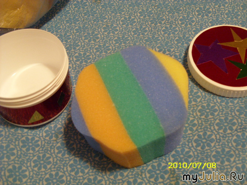 В магазине случайно увидела красивые, поролоновые, губки для тела и мимо пройти не смогла, купила две штуки. Баночек у меня еще много в запасе, на всех хватит!
