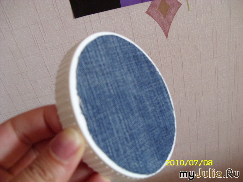 Но я бы края джинсовой ткани перед поклейкой "обработала" (промазала) клеем ПВА, чтобы потом бахрамы не было...=)