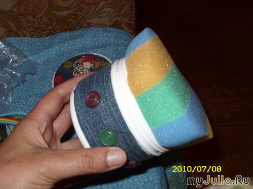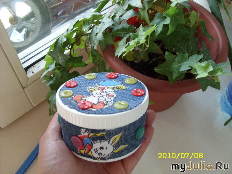 Быстренько работать, создавать игольницы из всего этого! Вот эту красную я смастерила из самоклеющейся, блестящей бумаги, нашелся листик, покупали для новогоднего костюма. А внутри у нее ничего не было. Приклеила на дно кусок двухстороннего скотча и заталкала поролон в банку, вот что получилось! А со следующей , так сказать, моделью, я проводила испытания, на этот же строительный двухсторонний скотч, я приклеивала джинсовую ткань. Захотелось украсить тканью баночку. И так вперед! Нам понадобится, кусок старых джинс, найдется наверное в каждом доме, если еще не успели выбросить! Обвести дно, приготовленной емкости. Вырезать получившийся круг. на круг наклеить двухсторонний скотч, приклеить одну сторону! Аккуратно отлепить защитную бумагу и приложить липкой стороной ткань к крышке. все должно хорошо прилипнуть! Вырезать прямоугольный кусок ткани по диаметру баночки. К краю так же приклеить скотч. Вырезать полоску из ткани с наклеенным на неё скотчем. Аккуратненько отлипляем защитную бумагу со скотча и приклеиваем полоску к банке! Вот что получилось! красота, но не украшено. Для украшения, использовала старые термо-переводки, помните в свое время были такие, мы их на футболки приклеивали утюгом! Приклеила их при помощи утюга и того же самого скотча. Для улучшения красоты обклеила верх и бок пуговицами! Снаружи все готово, а внутри пусто! Берем поролоновую губку и заполняем ею внутреннее пространство банки. Ну, вот теперь работа готова, красота неописуемая! Можно подарить подруге! Я думаю, что стыдно за такой подарок не будет! Рейтинг: +27 Отправить другуСсылка и анонс этого материала будут отправлены вашему другу по электронной почте. |